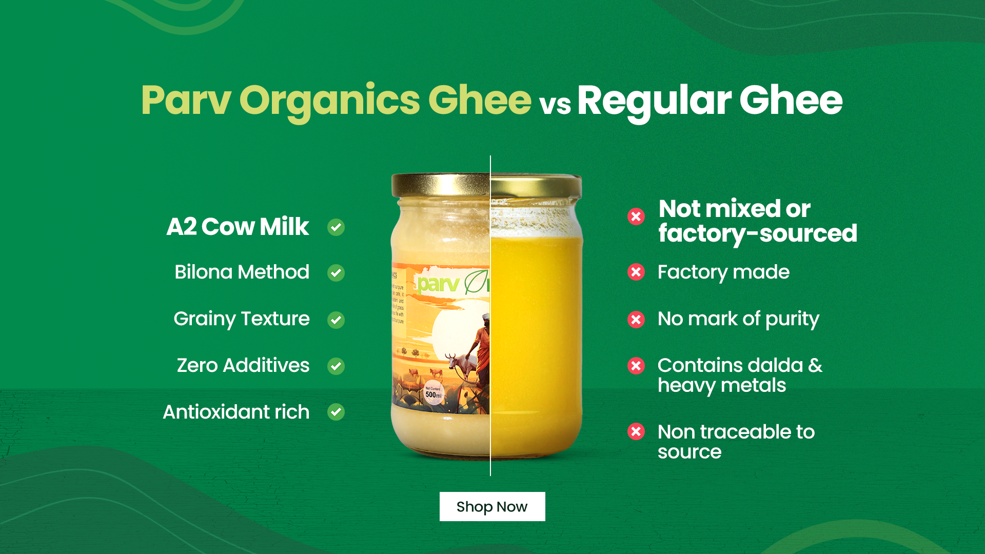Make wellness a daily ritual—with the purity of Parv Organics A2 Cow Ghee.